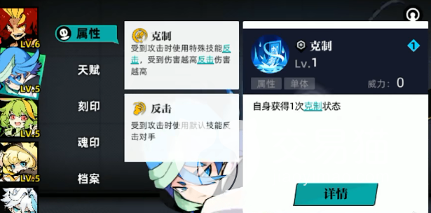 二技能为克制,这个技能也是一个比较特殊的技能,使用起来还是挺简单的,当敌人发起攻击的时候,玩家们可以快速进行反击。至于我们反击的伤害量,也是根据敌人的输出来决定的,敌人的伤害越高,我们反击的效果就会越强势,属于一个偏被动型技能。