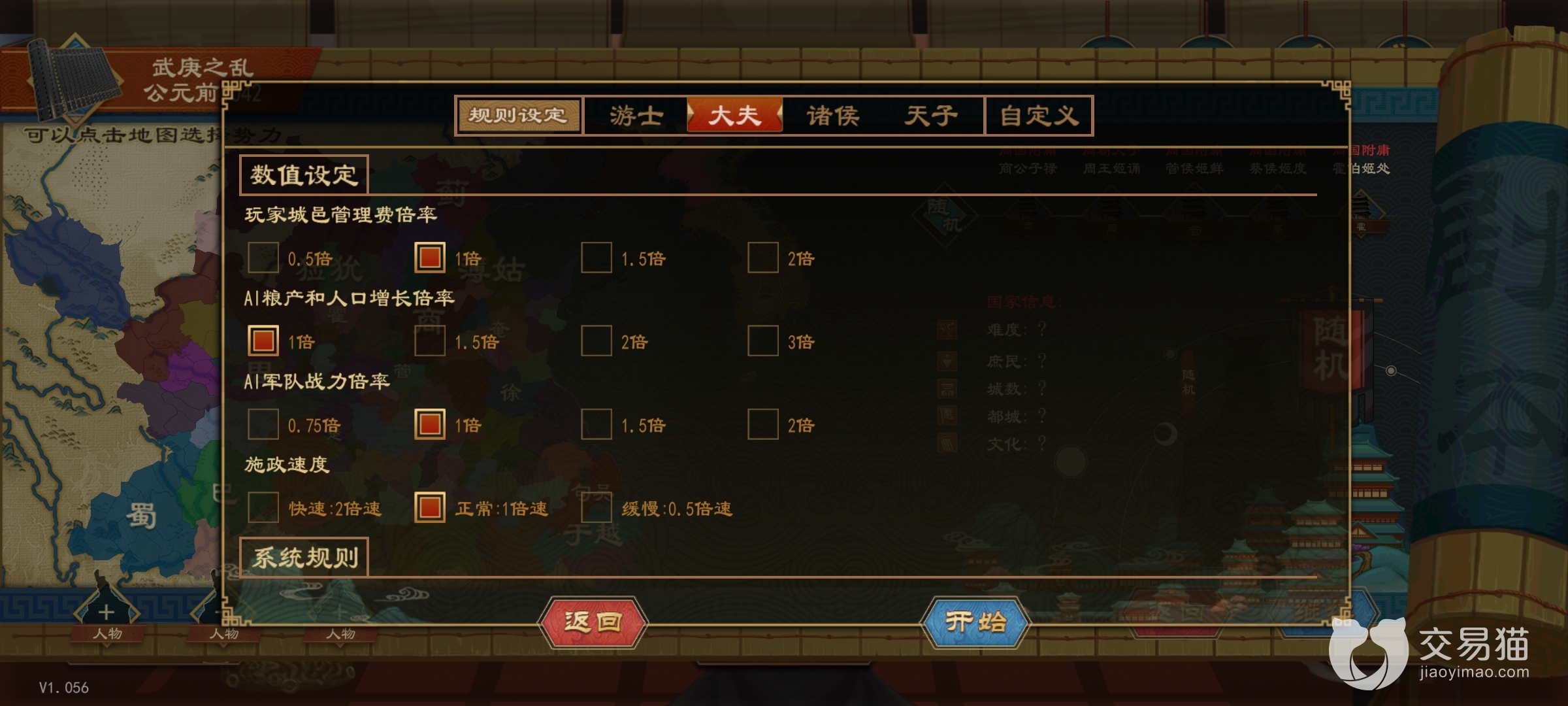 以上是本期小编带来的关于大周列国志开局规则设定方法的全部教学内容,参数设置说起来复杂,实际操作还是比较简单的,感兴趣的玩家可以进入游戏设置一番。