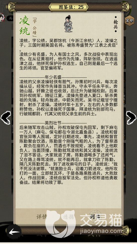 凌统这个角色是游戏前期大家大概率会获取的一个角色,因为在招募的时候出现的绿色武将是比较多的,而凌统就是一个绿色武将,大家要是想用绿色武将的话,其实就要提前了解,本期的名将之弈凌统怎么样会将凌统的一些信息介绍给大家,要是大家也有这个角色的话,可以先了解清楚他的强度。