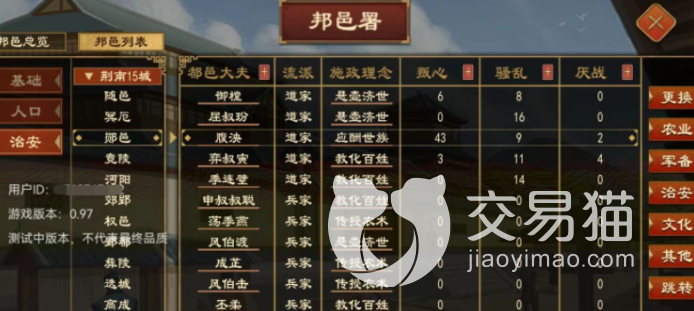 如果想管理的国家更加强大,需要让玩家在游戏中合理分配人才去管理城池,具体的操作路径:先选择城邑,然后指定都邑大夫,来进行任命,人才的技能不同,那对于城池的影响也是不同的,一般人才的属性更丰富,也会让城池发展的更好。