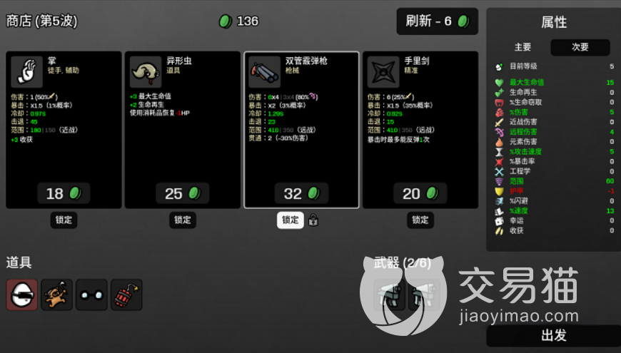 到这里就给大家介绍完土豆兄弟士兵用什么武器比较好的内容了,其实士兵这个职业强度还是有的,只不过比较考验他的移动走位,很容易一下就被敌人给留住,所以大家还是多注意挑选好的武器来进行辅助。