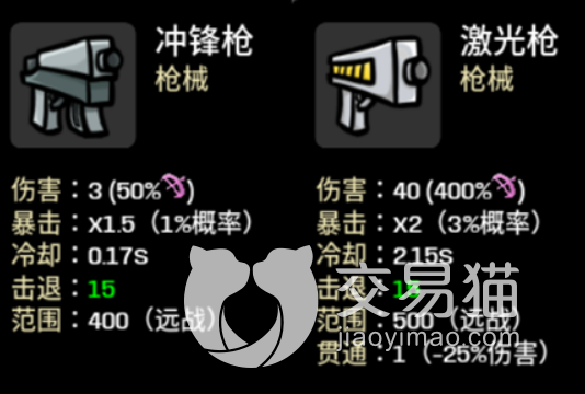 如果使用了激光枪,伤害也挺高,还能够触发暴击,但CD时间比较长,容易等很久。喷子的话也可以在比较近的时候使用,能够有效发出溅射伤害,在辅助的时候使用还是很有优势的。这三种武器里面最推荐的就是喷子和激光枪,在前期怪物不多的情况下使用最好。