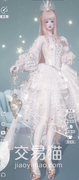 这个套装包含了连衣裙、皇冠头饰、项链、手套、袜子以及高跟鞋等,连衣裙上面镶嵌了大量珍珠、亮片以及水晶,看上去精致大气,和其他风格统一的几个部分组合在一起,完美诠释了什么叫真正的优雅,它也因此得到了大量玩家的喜爱。