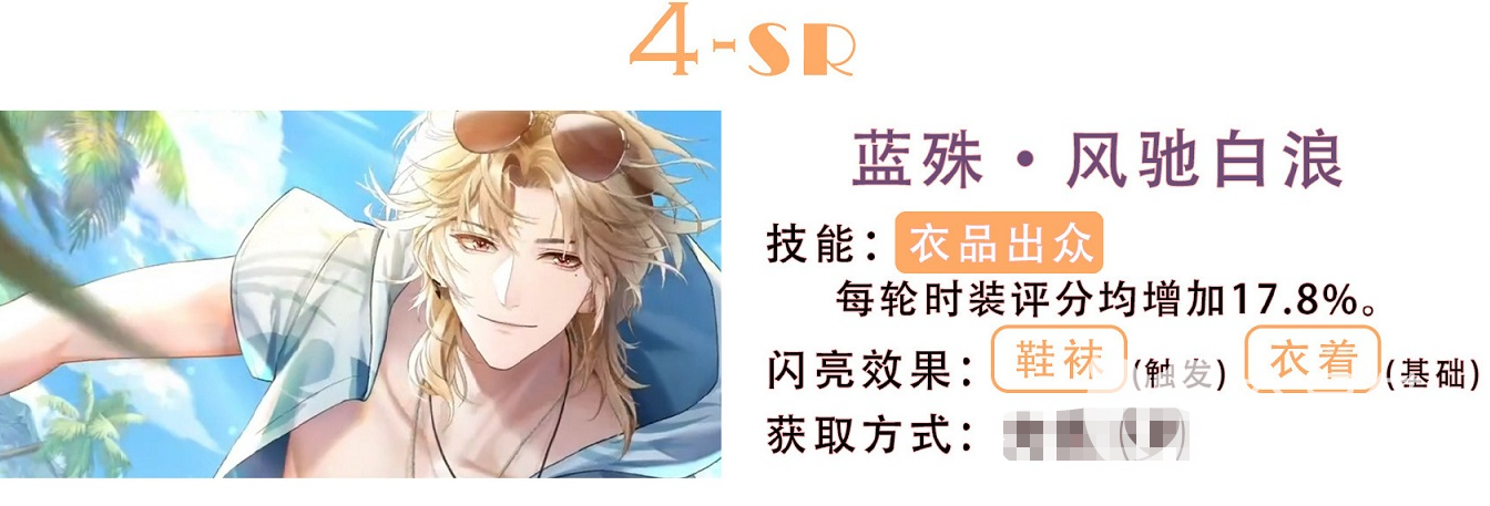 在以闪亮之名的游戏之中,蓝殊是一个混血的帅哥,风格非常独特,可以给我们带来最炫酷的生活体验,他生活的非常肆意张扬,可以将生活中所有的乐趣都呈现给你看,那么以闪亮之名SR风驰白浪获取方法有哪些也是大家最关心的问题,毕竟这个卡牌的加成还是比较多的,玩家们需要获取之后才能更好地使用,小编也根据大家的需求来介绍详细的获取方法,快来看看吧。