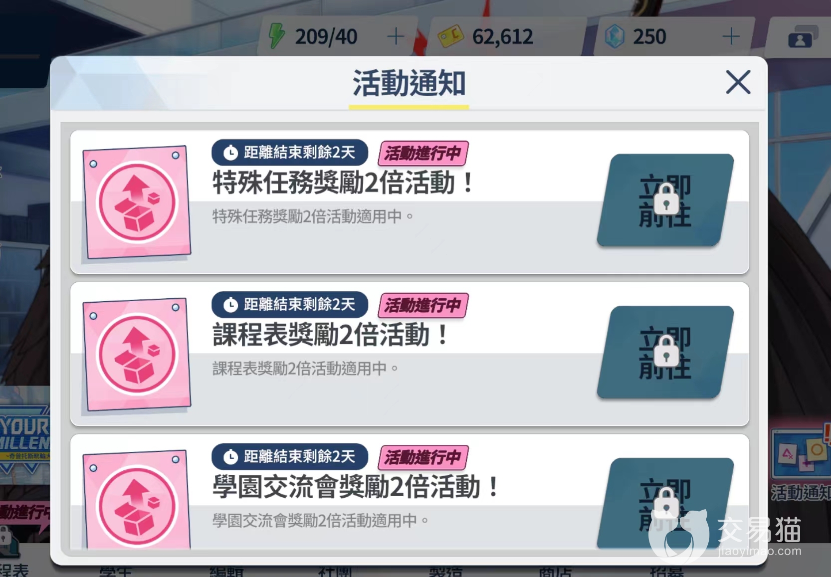 第二天在二十四小时之内,邮箱中的体力不会过期,玩家们先领取邮箱中前一天的溢出体力,再领取咖啡馆中的满体力,最后再买jjc体力四次,这样重复操作Y天,直到Y×X+自然回复体力的上限等于999时,玩家们的存体力大作战就算圆满成功了。直到玩家们需要把体力全部刷光的那一天之前,邮箱中会一直保持有Y×X点体力。