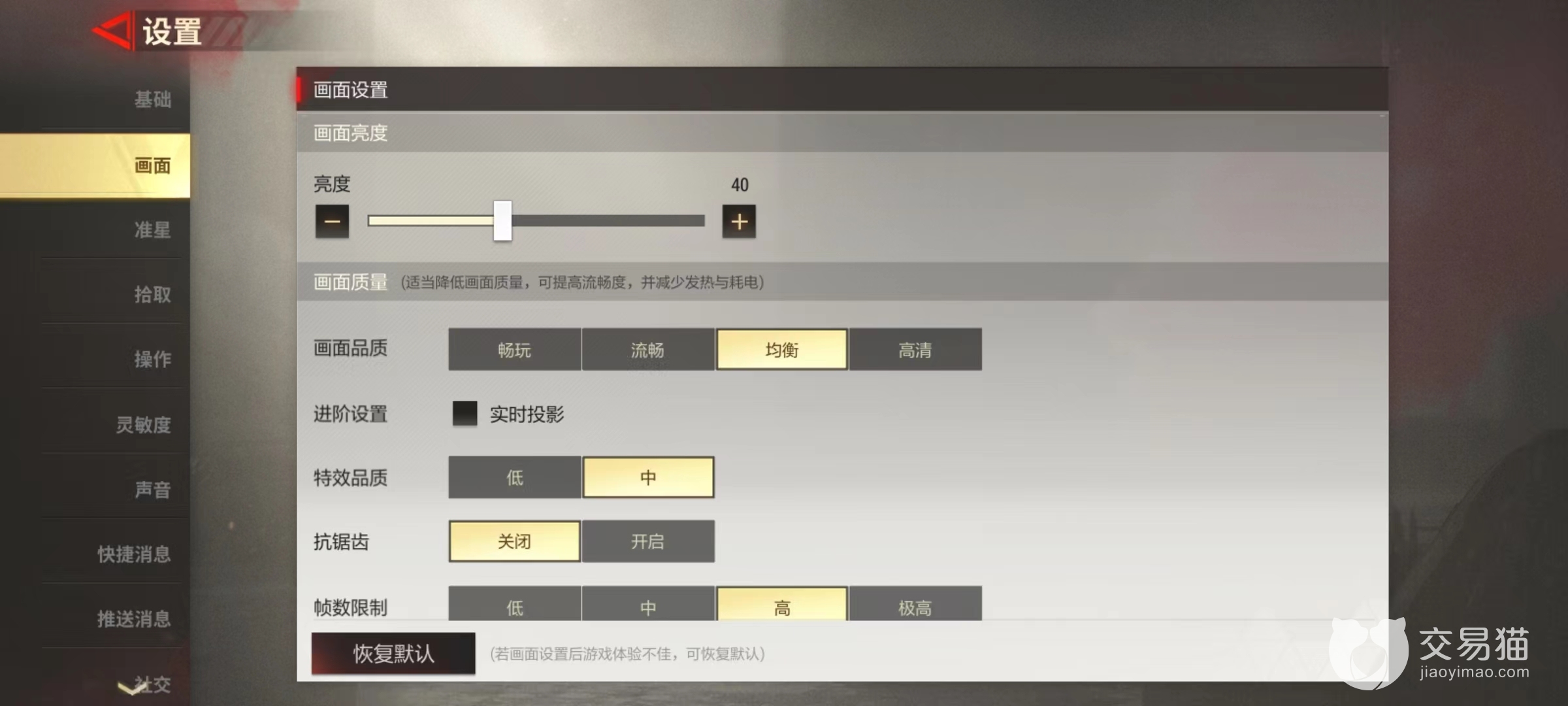 虽然游戏中有很丰富的画面设置,但是并不是为了节省流量,而是为了获得更流畅的竞技效果。包括调整屏幕亮度,改变画面品质和特效品质,以及帧数限制等。这些可以根据自己手机硬件设置进行选择,如果硬件配置低些,就将画面品质和其他方面调低,这样就能获得更快响应速度。如果硬件和网络比较出色,建议直接开启到极高和高清,这样才能体验到游戏中真实风景。而且不仅仅是画面更好,也有助于竞技手感提升,在更远地方看清敌人,自然在射击时候也更方便。