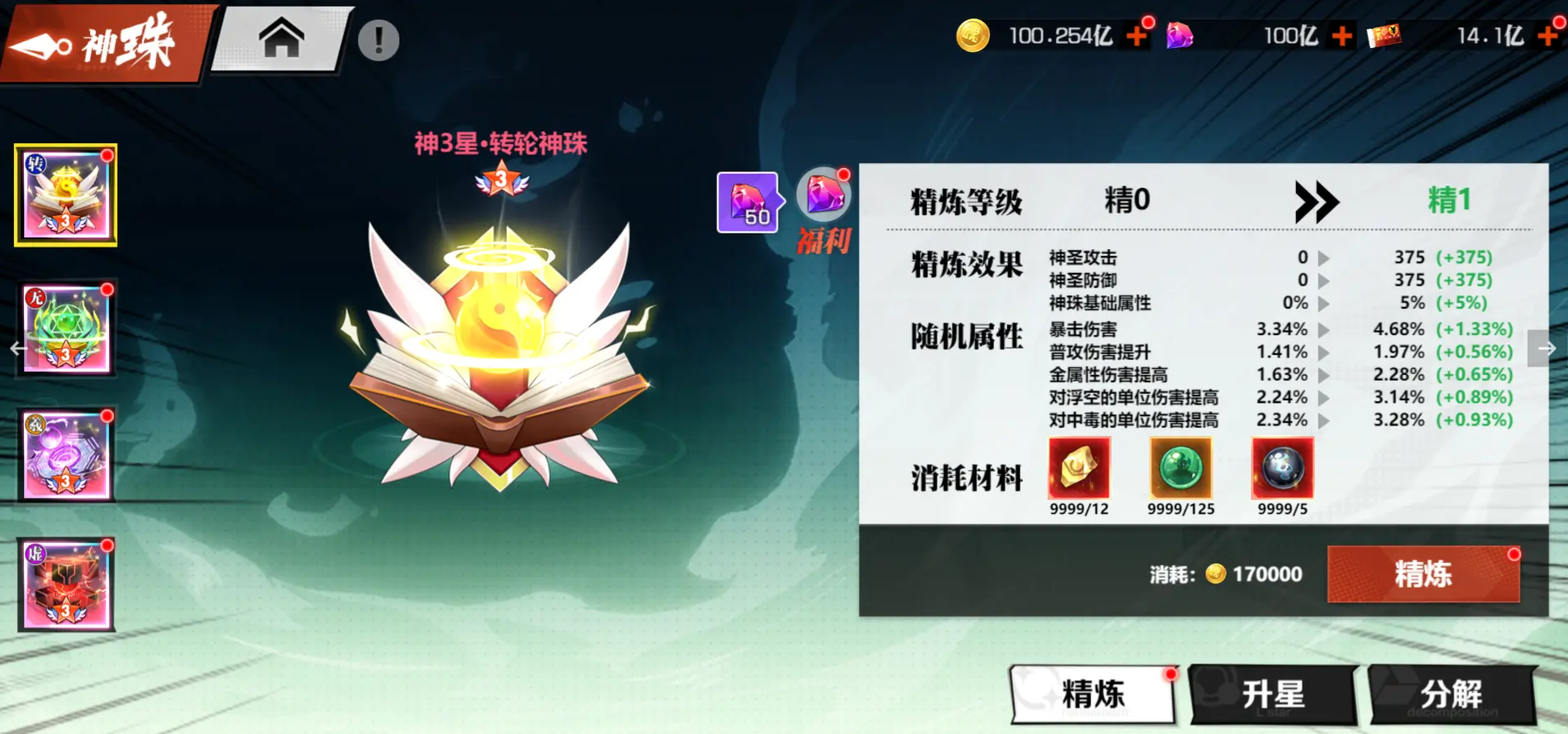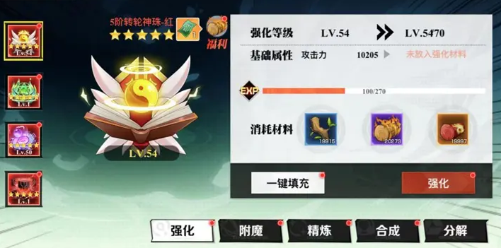 同时每一颗灵珠都能够升级,最高等级为70级,升级的材料和货币也是随着等级不断提高,当然等级越高能够带来的战斗力提升也是越高的,官方知道小伙伴们一级一级的提升非常麻烦,因此特地推出了一件填充的功能,方便小伙伴们进行对灵珠的各种操作。