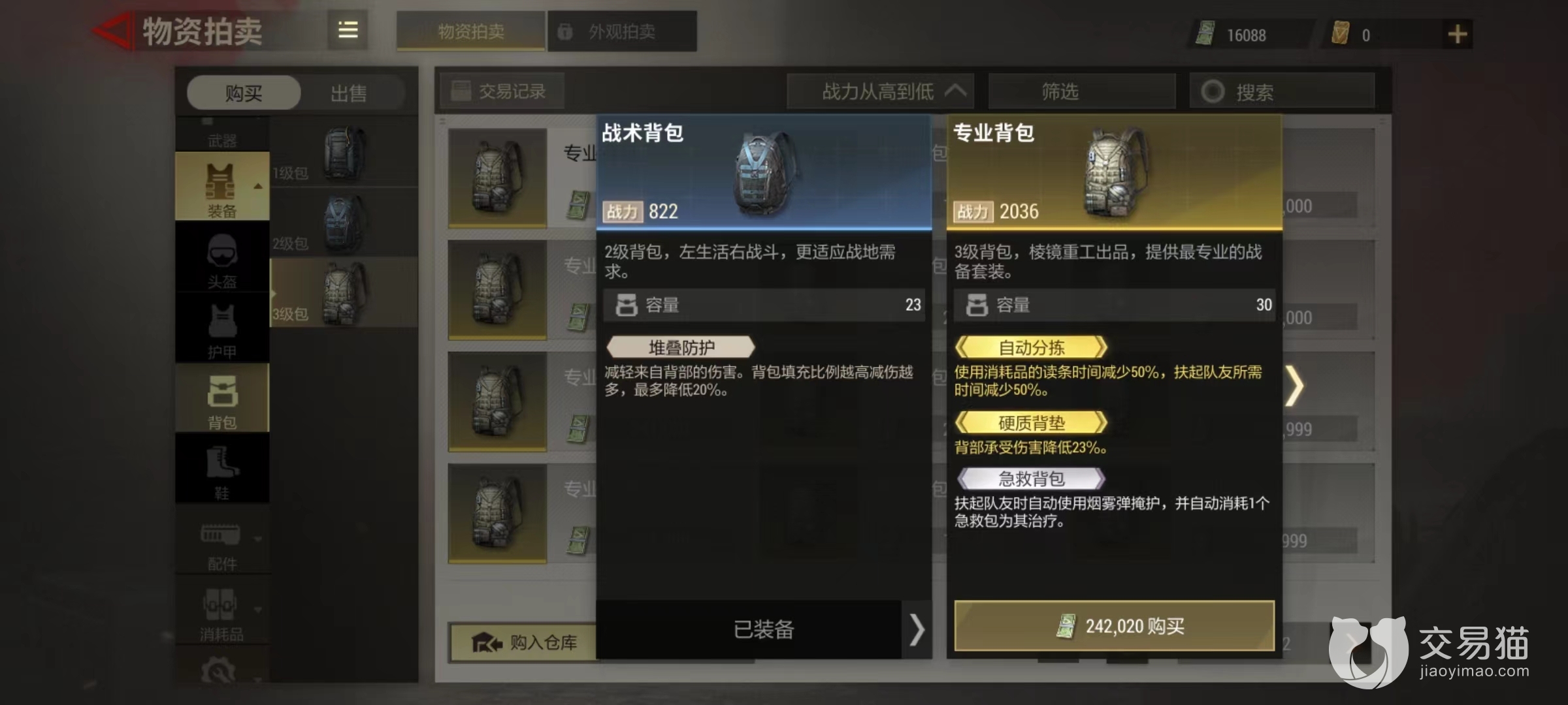 玩家可以装备的背包从1级开始,一直到最高的3级,分为3个不同类型。在选择时候除了看品质之外,首先要注重等级,等级越高所带来空间也就越大,这是品质所难以改变的。在同等级之内才要考虑到更高品质,因为高品质配件能够提升很多额外属性。对于背包来说,小编认为最值得选择的几项属性为自动分拣,硬质背垫,急救背包等。