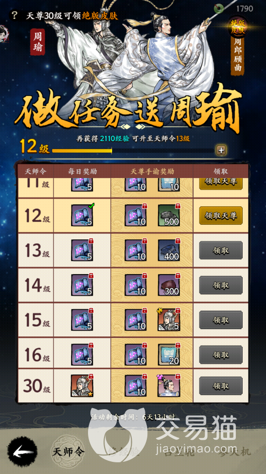 在大家解锁了天师占星之后,一共可以看到四个选项,天师令、修经验、占星轮以及参天机,首先天师令中大家可以根据目前自己修炼的天师等级领取到奖励,要是不充值的话可以领取到的大部分是观星策奖励,要是充值天尊的话就会有额外的武将碎片奖励。