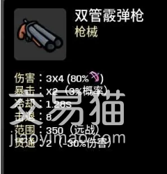 投掷物的概念大家看完上文中的介绍后应该是清楚了吧,那下面在给大家介绍一下几件有代表性的投掷物武器吧,首先是双管散弹枪,这就是一把很有代表性的投掷武器,它可以发射出多发子弹,这些子弹可以对敌人造成大量的伤害还会附带击退效果。
