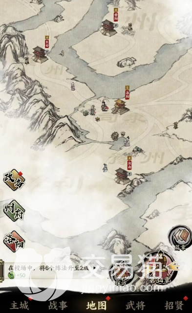 其实吧游戏中武将获取是很简单的,有好几种方法可以获得武将,首先是第一种招募,大家在主界面点击地图之后在下方能看到五个选项,分别是地图、武将、战事、主城和招贤,这五个选项中大家只需要选择招贤就可以了。