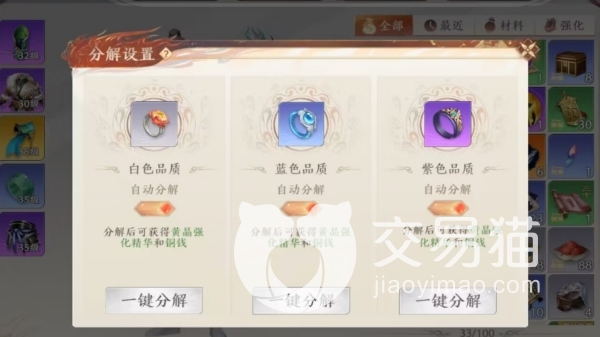玩家在刷到自己不想要的装备后,除了卖出外还可以选择将它们分解,并且在分解过程中将会给玩家带来少量的强化精华。这种方法虽然在理论上没有获取数量上限的说法,但游戏中的装备爆率比较低,所以玩家在装备实在卖不出去时再选择分解,不要将该方法当作获取强化精华的主要途径。