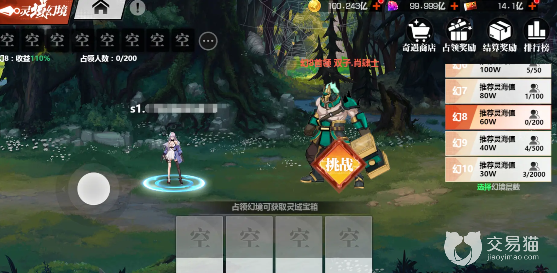 以上就是为大家带来的这款游戏灵域环境的玩法,作为一个挑战类型的模式,幻境也是有一个排行榜的,小伙伴们所消耗的时间越短,排名也会越高,也会获得一些比较稀有的限时奖励,小伙伴们赶紧冲榜吧!