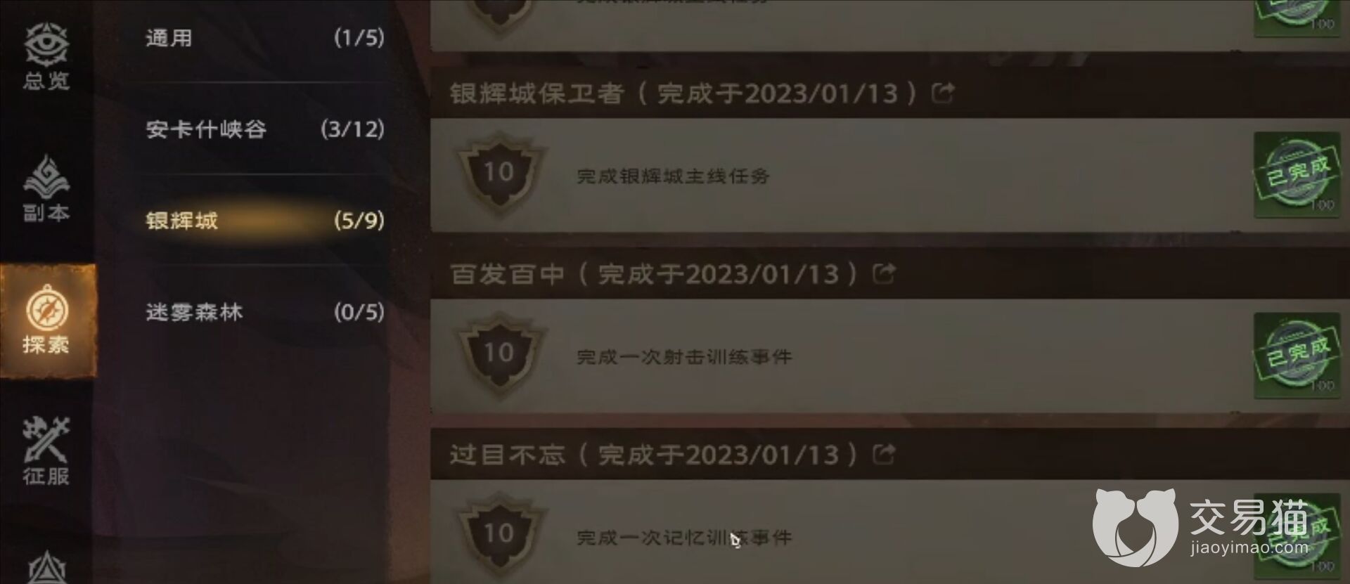 而探索类成就达成的难度则较高,因为该类成就大多要求玩家将某个地图的探索度达到指定数额后才会解锁,因此这类成就还需要玩家花费时间去探索大地图,因此该类成就不适合玩家在新手期完成,比较适合老玩家消磨时间完成,当然,探索类成就给的奖励相对其他成就而言也更加丰富哦!