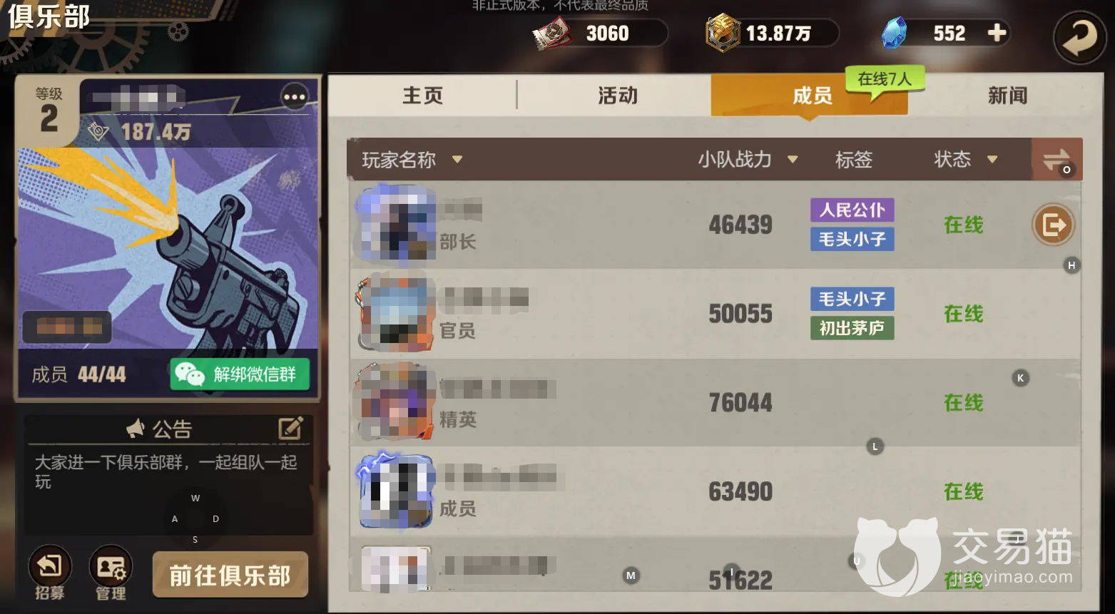 2、在进入战场之前,需要玩家先编配好小队,因为在之后就无法再次更换角色、武器、顺序。在进入战场后,玩家可以玩家可以看到其他俱乐部的玩家,此时可以自行寻找对手进行挑战,不过要注意挑战次数有上限的。