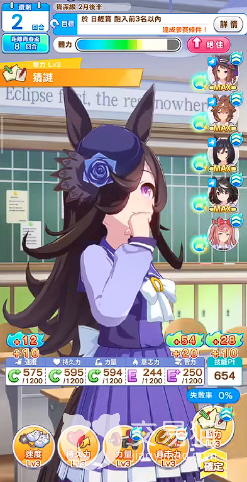 育成过程中,玩家们需要根据角色本身的特性进行相应的加点,通常情况下,都以速度为主,然后根据跑法距离来决定剩下的耐力和力量的加点。属性中唯一要多注意的就是智力这个东西,相当于角色的蓝量,只有智力越高,玩家们角色的释放技能概率才会越大。等到我们的角色通过我们的培养,在点数方面得到提升之后,参加各类型比赛,完成相应的育成目标,即可以育成成功。到时候这名角色就可以作为我们手下的主战力量,在各个场地比赛中使用了。
