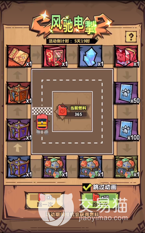 这次任务只需要玩家们在活动期间定时上线,然后进行挂机游戏,就可以完成大部分的任务哦!在活动期间内挂机,游戏就会随着小伙伴们的游戏时间,给予不同数量的“汽油燃料”,获得汽油燃料之后,小车就会在抽奖界面进行跑圈,停在哪,哪里的奖励就归小伙伴们所有啦!