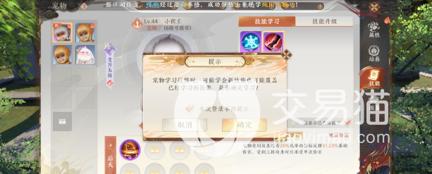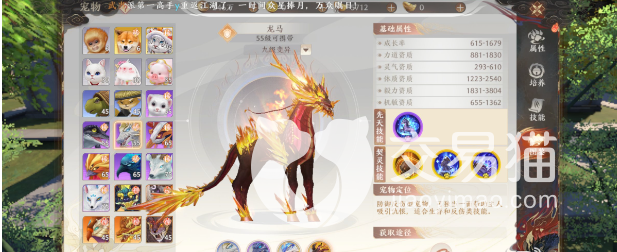作为内功型的宠物,我们一定要将它的天赋点尽量都点在输出上,尤其是内功那一栏,蛟龙的技能也十分无敌,先手技能可以将范围内的敌人造成aoe伤害并且附加晕眩状态,回光技能更是被誉为“免死金牌”,被动技能龙威更可以提升5倍的输出,可谓是十分强大且无脑强的一只宠物啦!