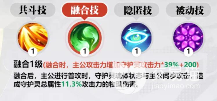 飞廉的融合技能十分优秀,能够给主角带来自身39%总属性+200点的攻击力加成,大幅度提高主角的输出能力,同时当主角进行平A时,守护灵也能够以灵魂状态和主角共同共计造成总属性一定比例值的物理伤害,在合适的时机使用融合技,能够大幅度加快清图的速度。