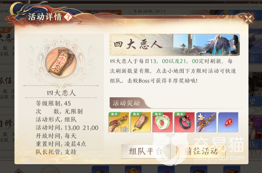 这个活动除了暗器之外还会有一些其他的特殊奖励,包括红色的戒指,还有一些玉石等等,这些都可以对玩家的实力提升起到显著的帮助,所以一定记得要按时参加它,当然,游戏中还有一些其他的暗器也能获取,不过这些也基本都在活动之中,大家可以点击主页的上方的活动来自行查看。