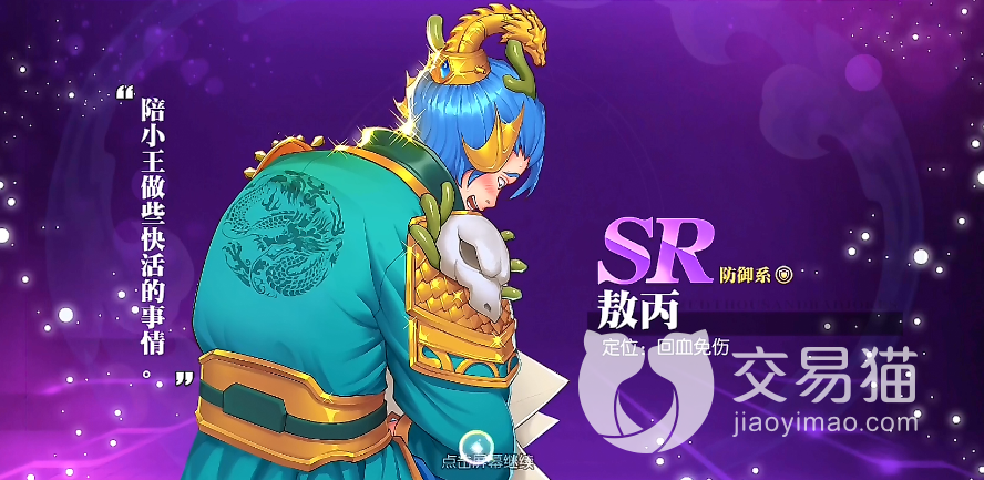 从品质上看,敖丙只是sr级别角色,获取难度很低,我们在进行新手教程的时候就可以获取敖丙,这个角色属于一个妥妥的前期角色,可以帮助我们应对前期繁琐的对战刷图环节,玩家们在获取之后可以对其进行养成,敖丙在游戏内的定位防御,不过自身的伤害力还是很不错的,我们可以直接使用这个角色,无论是单体输出还是群体攻击都是可以的。