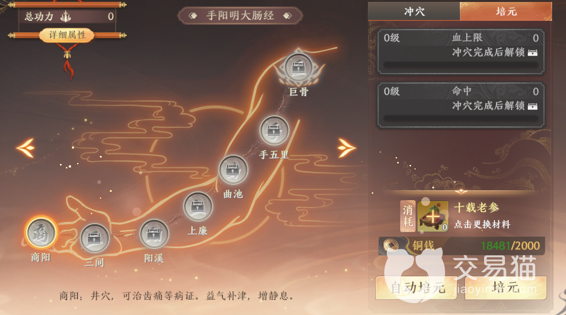 完成冲穴之后你还可以在经脉中进行培元的操作,这个操作增加的是单一的属性,并且有着等级划分,越高级增加的属性数值则越多,不过这期间所消耗的材料数量也是比较庞大的,所以建议大家做好长期投入进这一玩法中的准备。