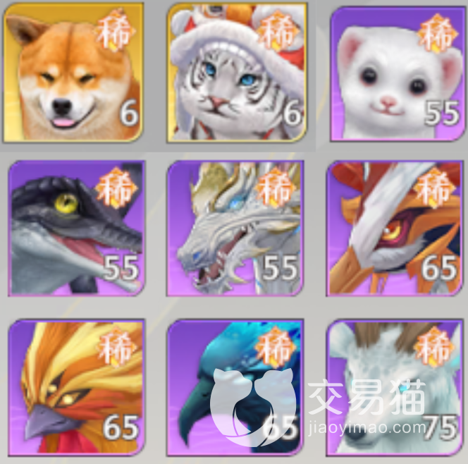 稀有:旺财,白虎,闪电貂,蜥蜴,龙马,毕方,重明,夫诸,九尾狐。这一层级的怪物普遍更为强力,它们的强力体现在属性和技能两个方面,很多都可以变异到八级甚至九级,拥有额外的输出和辅助手段,所以与它们交战需要特别注意自己的操作,而如果想获得它们则只能通过挑战副本的方式,并且其对应的副本难度本身都是不低的。
