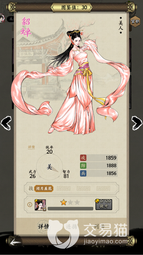 貂蝉主要是强在可以给对面加状态,她的技能闭月羞花可以让敌人进入混乱的状态,这类技能在美人中是没有的,而且跟貂蝉产生连携技能的有两位武将,分别是吕布跟董卓,所以貂蝉搭配起来也比较好搭配,获取了强化等级效果之后会更厉害。
