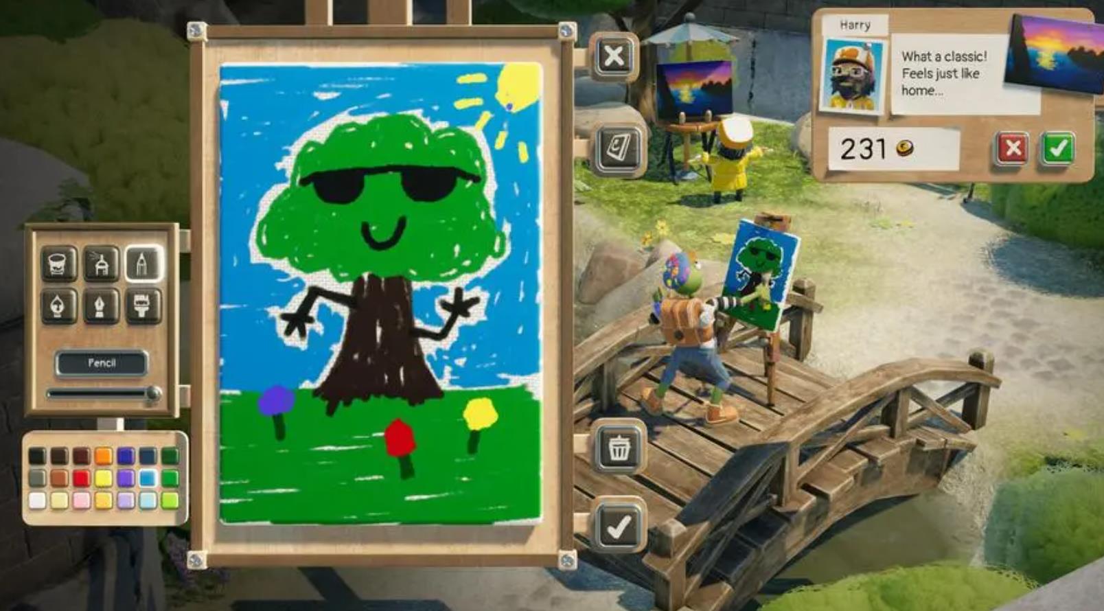 这款游戏的玩法很简单,就是玩家要扮演一个穷困潦倒的画师,在大街上作画,路人们会买你的画,然后对你的画进行点评。最有趣的地方,就是让玩家可以亲身感受到,一副画,一副不是很用心的画,但一幅画,却能被人奉为神作。这是一个绝佳的机会。