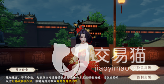 离婚并不需要什么其它的条件,只需要两位申请离婚的人是夫妻即可,双方确认要解除关系后,需要去洛阳城找到负责这一方面的npc——月老,在她旁边的侍女就是负责管理离婚的了。
