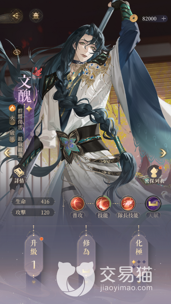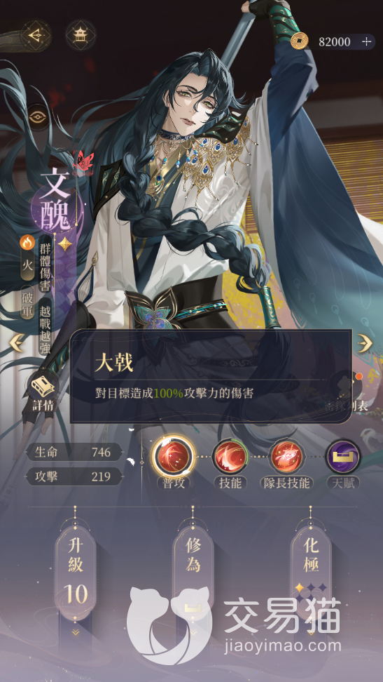 技能:普攻与多数角色一样,都是单体100%攻击的伤害,效果上没什么好评价,只能说不会拖后腿,不过它的动画呈现还是不错的,和其名字“大戟”一样,实战中文丑会拿一把长戟去攻击敌人,十分的有打击感。