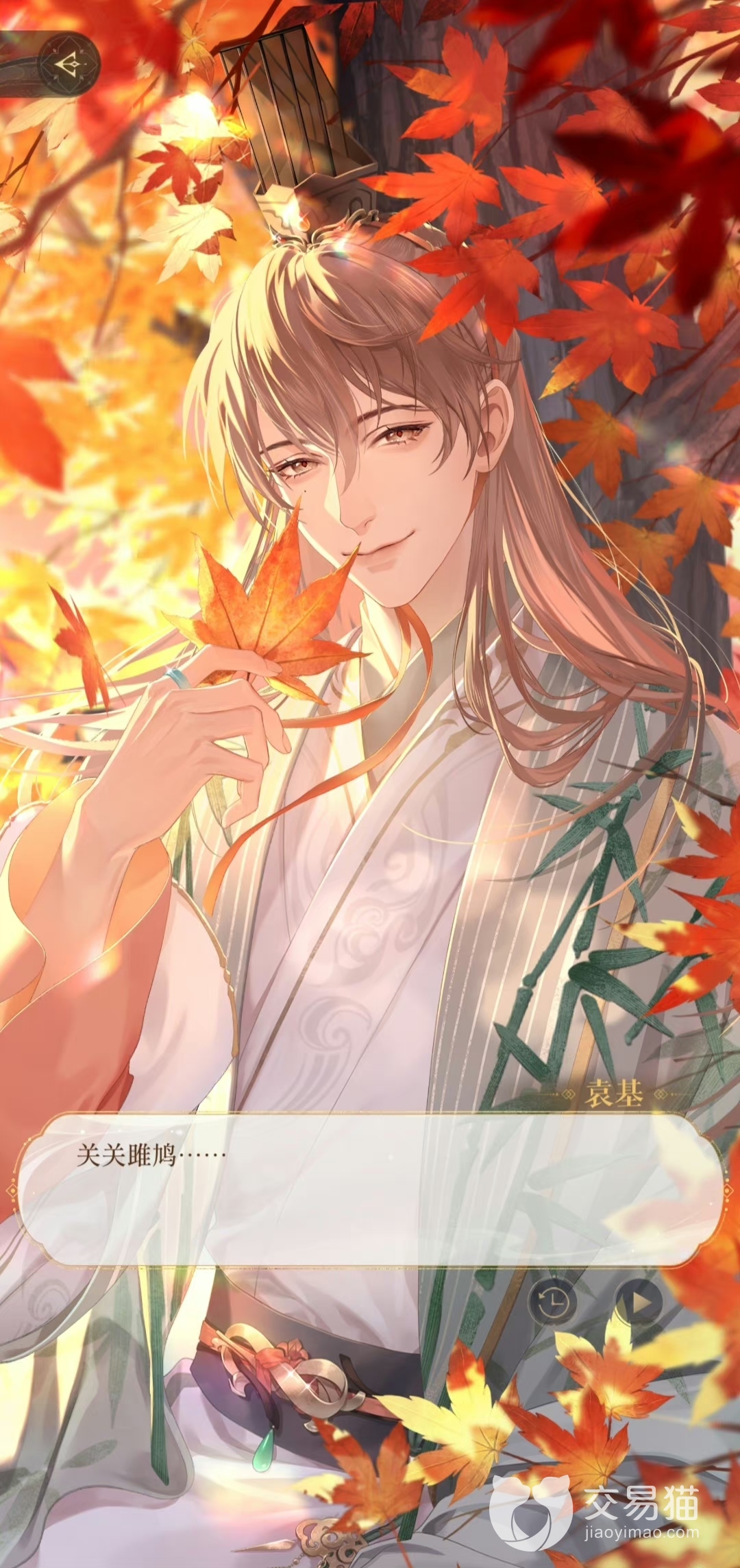 第三位是袁基,袁基是一位谦谦君子,你跟他的第一次相遇十分的戏剧性,命运就是这么奇妙,安排了你们相遇。在游戏中袁基的设定是白切黑的小白兔,表面上看上去温和有礼,其实是隐藏的大人物,随着剧情一点点推进,袁基的真实身份也会慢慢出来,玩家只要顺着剧情走就可以了。
