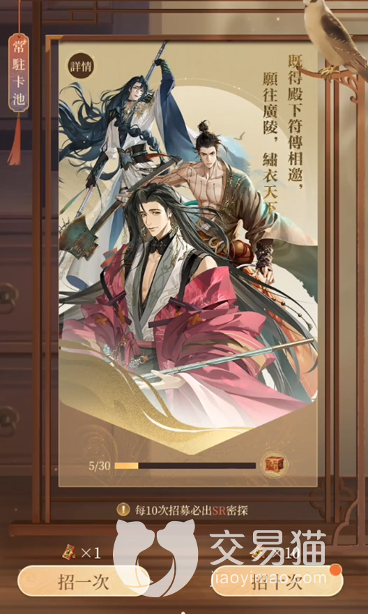 好了,以上就是有关“代号鸢吕蒙获取方式介绍”的全部内容,获取该角色的难度还是比较高的,毕竟他出的几率很小,甚至于之前的几次测试都很少有玩家抽到,所以大家要获取的话可得备足银两。