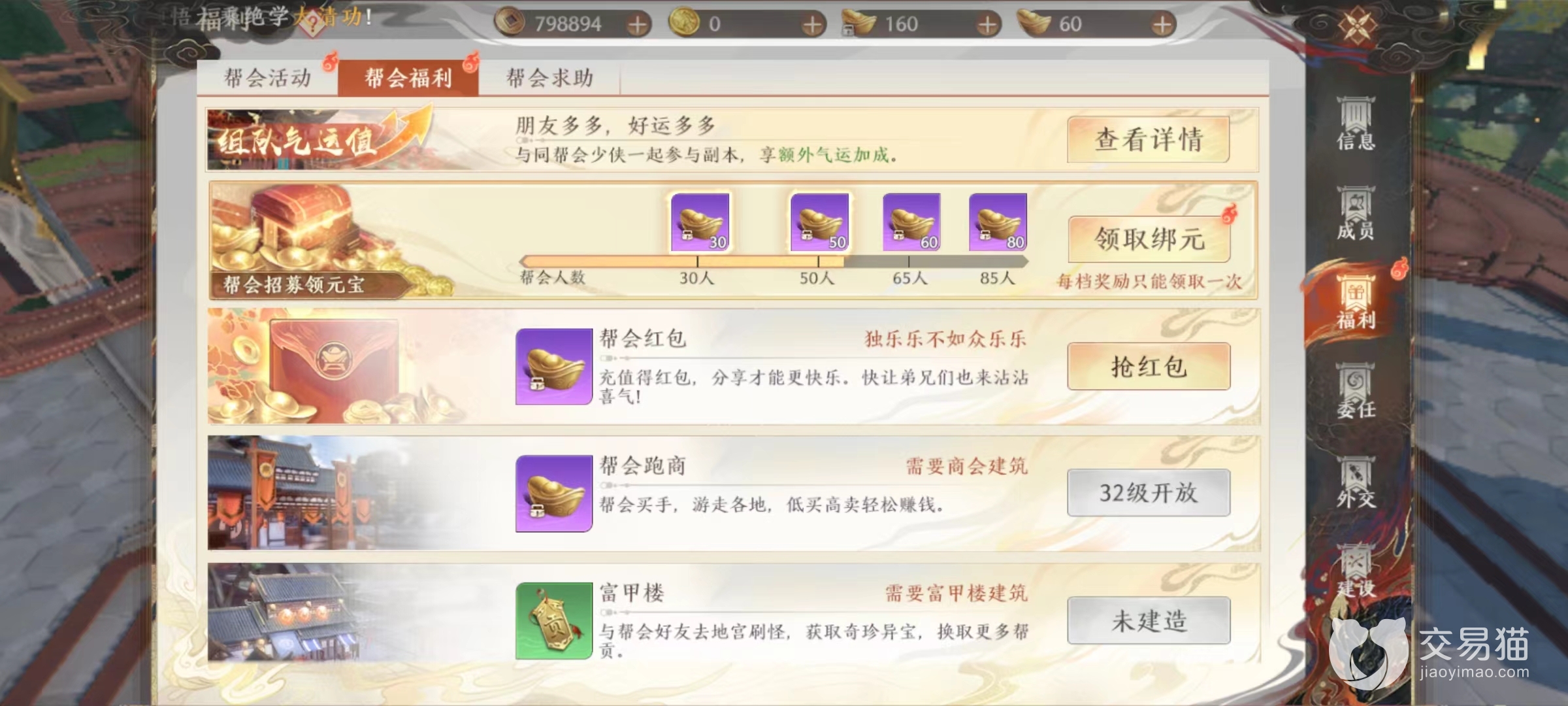 帮会建立起来之后,就需要广泛发动好友一起加入,只有成员活跃度高才能慢慢积累资金升级。帮派等级提升之后能够开启更多活动和奖励,以及建造各种功能性建筑物,为帮派成员提供福利。如果在游戏中出现矛盾,帮会还有一项特权是直接进行帮会宣战,这样就可以非常轻松解决矛盾。