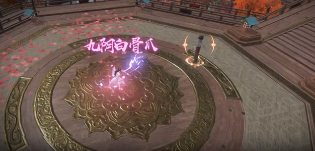 然后有一个输出技能叫做九阴白骨爪,可以对一个敌人造成大量的伤害,并附加流血状态,是个很强的持续性伤害技能,并且在技能结束的时候还会施加强力一击,如果你想要玩一个主C的话,就可以主升这个技能,让你一个人也可以单挑boss。