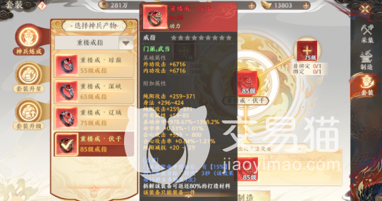 装备的强化相对来说就比较容易理解的,就算是更换了装备之后,强化等级依然会保留,所以小伙伴们只要有了足够的强化材料就可以放心的进行强化操作,不同的装备位置在强化过后也能够得到不同的属性加成,在强化等级到达了一定的上限之后,还能够通过锤炼获得额外的属性加成,所以小伙伴们一定要多多强化哦!如果没有很多的强化材料的话,就可以优先升级对应门派的属性,这样能够发挥出更强的作用。
