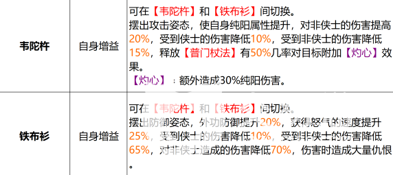 无尘的精髓主要在于其两种模式的切换,分别是韦陀杵和铁布衫,韦陀杵状态下的无尘,能够大幅度提升自己的纯阳属性,受到玩家的攻击也会降低一成左右,在韦陀杵状态下释放普门杖法还能够有高额的几率给敌方附加上浊心的debuff,从而加成自身的攻击能力,而铁布衫的状态相爱,能够提高自身二成的防御能力,同时怒气的获取速度也会上升25%,并且减免受到的敌方伤害,因此小伙伴们在pvp 的过程中,敌对玩家释放大招的时候,切换成铁布衫状态,在自己攻击的过程中,切换到韦陀杵的状态,就能够针对性的防御和进攻,非常全面。