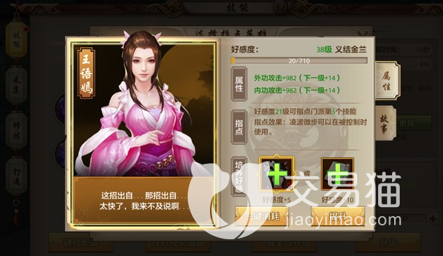 王语嫣也可以控制凌波微步,在使用的过程当中可以增加高额伤害以及攻击能力,尤其是对于pvp战斗非常合适。
