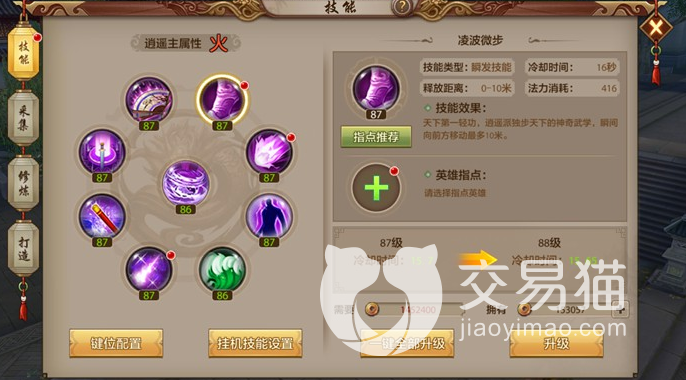 在游戏当众多门派中,逍遥是万金油的存在,无论和哪一个门派对战,都有不错的输出能力群体,伤害范围也不差。想要选择合适的英雄指点凌波微步,比较推荐大家选择云中鹤。这一个英雄使用该技能之后,可以对周围两米敌人造成一定的伤害,虽然两米范围比较小,但和其他职业相比较起来也是很独特的。