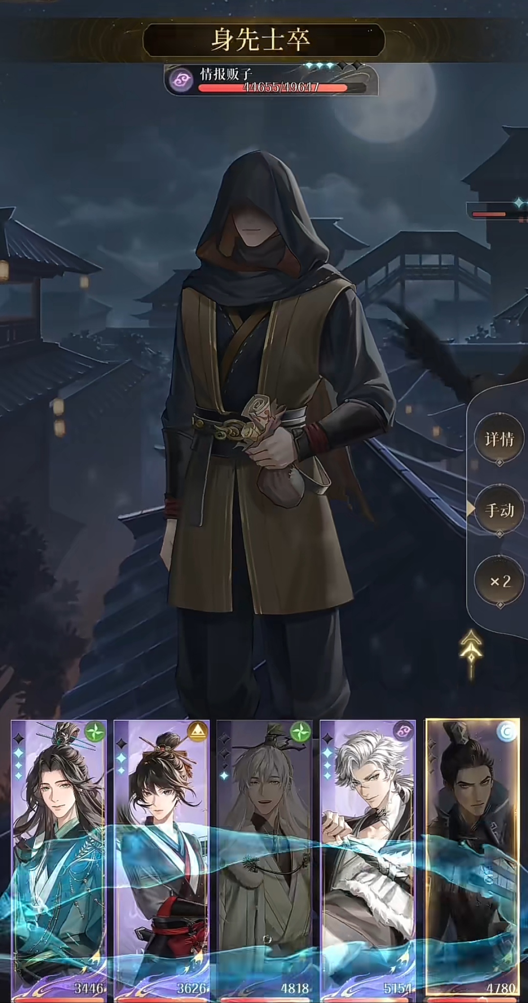3,在盾角色嘲讽第二回合,颜良开大接力吃下平a,这样鲁肃能5000+血量进刺客大,有玩家测试过,5000+血量鲁肃可以下拉防御吃下刺客大,只要保住鲁肃一切好说,如果还能幸运的触发鲁肃的劝退就更好了,过了这个关键点就没什么难度了,基本上都可以过关。