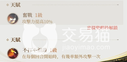 觉醒之后则会解锁“奋战”,这个也是大多数输出角色标配的天赋,其实个人觉得10%的攻击加成对吕蒙这种偏向承伤的角色来说并不是很受用,因为他的基础攻击很低,能加到的具体数值注定不会高。