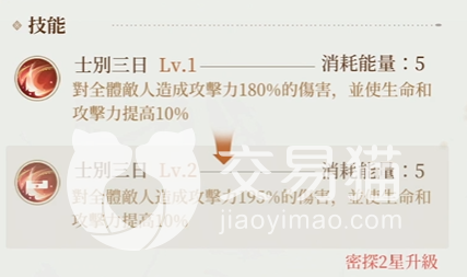 天赋:其三星解锁的“不打不相识”天赋可以令吕蒙在每回合开始的时候获得额外一次的攻击机会,对于攻击力较低的吕蒙来说,这一天赋可谓是大大提升了他在输出方面的上限,毕竟远低于其他同品质角色的攻击属性,已经拖了很多后腿,而有了这额外的一次攻击之后,可以说他一下子就变成攻防一体的角色了。