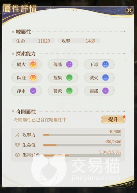 奇闻属性这块,则是继攻击和生命之后增加了一定的免伤,这些免伤可以让吕蒙变得更加能抗,这也充分照应了他的定位,能够帮助队伍分担更多的火力。