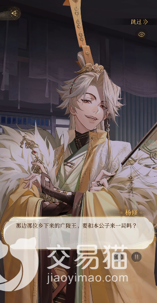 跟踪了杨修之后发现他来到了赌坊,在赌坊中,杨修跟玩家之间就是第一次交互,进行一场赌局,但是玩家赢不了,所以第一次见面就是不欢而散,杨修这个角色其实是比较聪明的,每一次剧情中先要从杨修身上套话都会失败。