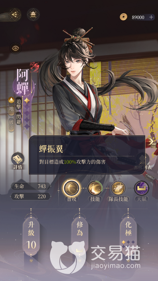 阿婵这个角色在游戏中的定位本身就是以输出为主,破军类密探都是比较适合攻击的,她的普攻蝶振翼是一个伤害技能,造成的伤害值就是阿婵全部的伤害值,这个技能比较一般,所以其实阿婵升级之后使用技能的话会更好用一点。
