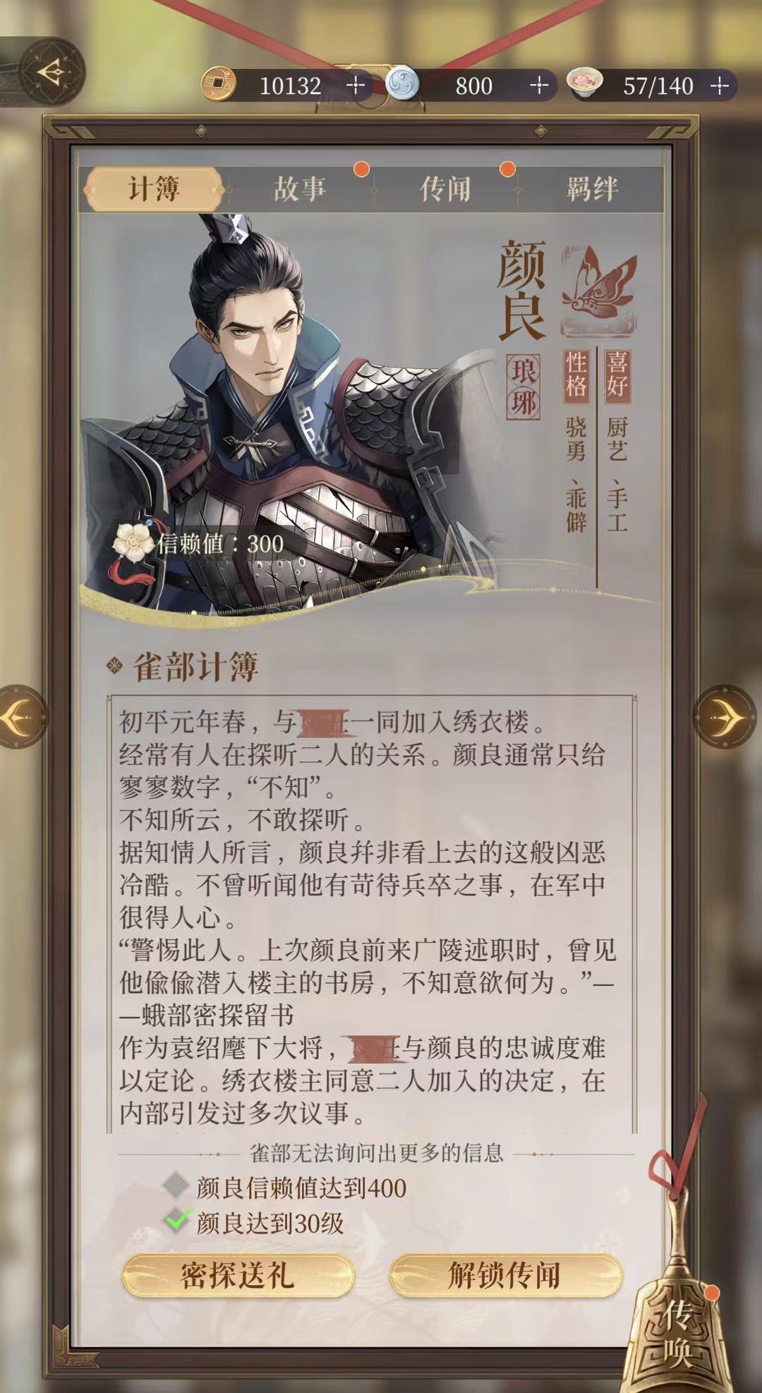 颜良是开服初始角色之一,可以使用通过主线关卡获取的符传,从普通卡池以及限定限时的卡池中招募。比较建议各位玩家去普通卡池抽,每抽一发10连就必保底一个机密密探,每抽概率2.15%,抽到颜良的几率挺高,而且如果抽到重复的角色,也大有作用。重复角色会化为30个心纸,使用这些碎片可以为角色升星,解锁天赋以及强化主动技。
