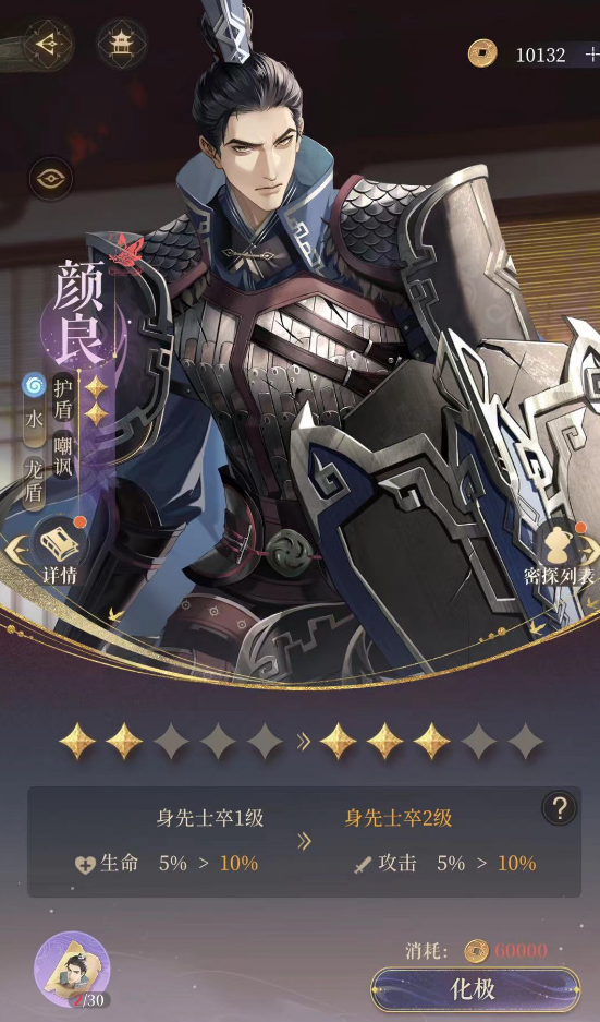 以上就是小编给各位玩家带来的代号鸢颜良获取方式介绍,颜良是游戏里面强度t1的盾护角色,没有抽到郭解的时候,颜良无疑是每个阵容必带的防御位置,所以很值得玩家抽取。