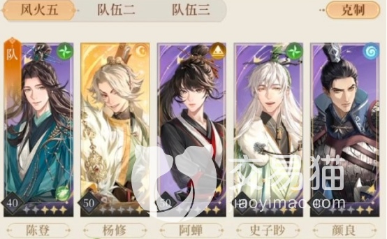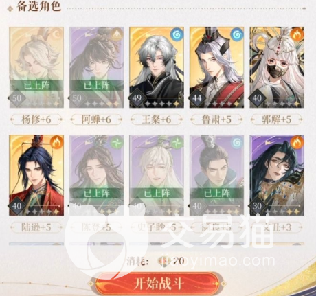 首先我们来详细了解该关卡的阵容搭配,由杨修作为队长,然后再搭配其他的几位队员,包括郭解、阿蝉、史子眇、鲁肃。想要轻松通过这一个关卡,主要的思路就是赌,尤其是在开场时,队长需要投掷骰子。