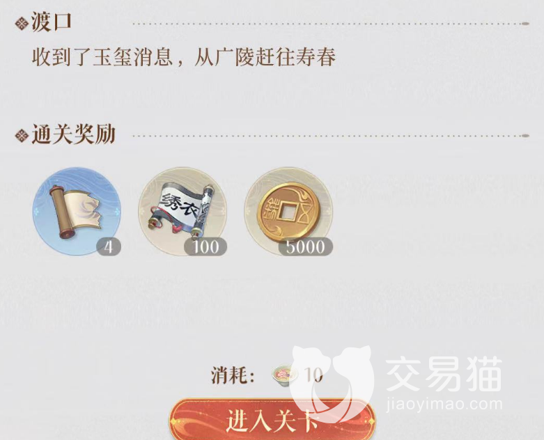 玩家收到天子玉玺的消息,连忙坐船前往寿春,此行利借用了乔家的大女儿身份,带着假扮成侍女的阿蝉前往水路坐船。在5-4地图上有6个可以点击的前进路线,新手玩家比较推荐全按前进按钮,不要点击停泊的船,最后的船夫才是可靠的,前面两艘船如果点击了就要开始战斗关,一旦开启战斗关就无法退出重选线路。