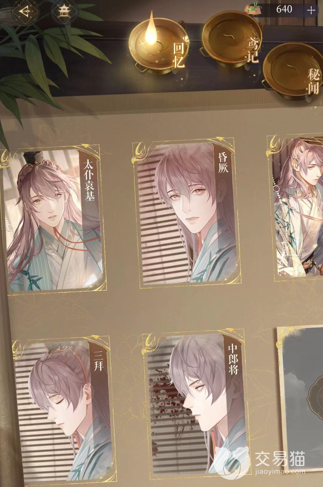 鸢记剧情一共有6个可解锁,秘闻一共有20条可解锁,解锁条件为鸢报随机触发。在“他的传闻”页面中,玩家选择竹叶路线可以稳定收集袁基秘闻,内容有:制香、应酬、射艺等。